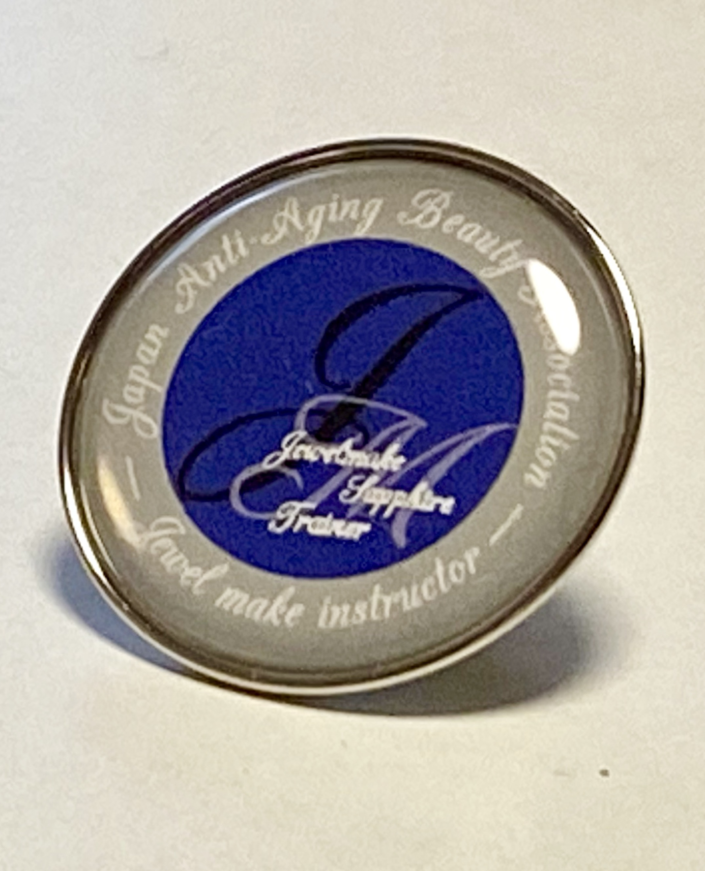 ジュエルメイク®︎トレーナー(2級インストラクター)にはサファイヤの称号の入ったバッジを。